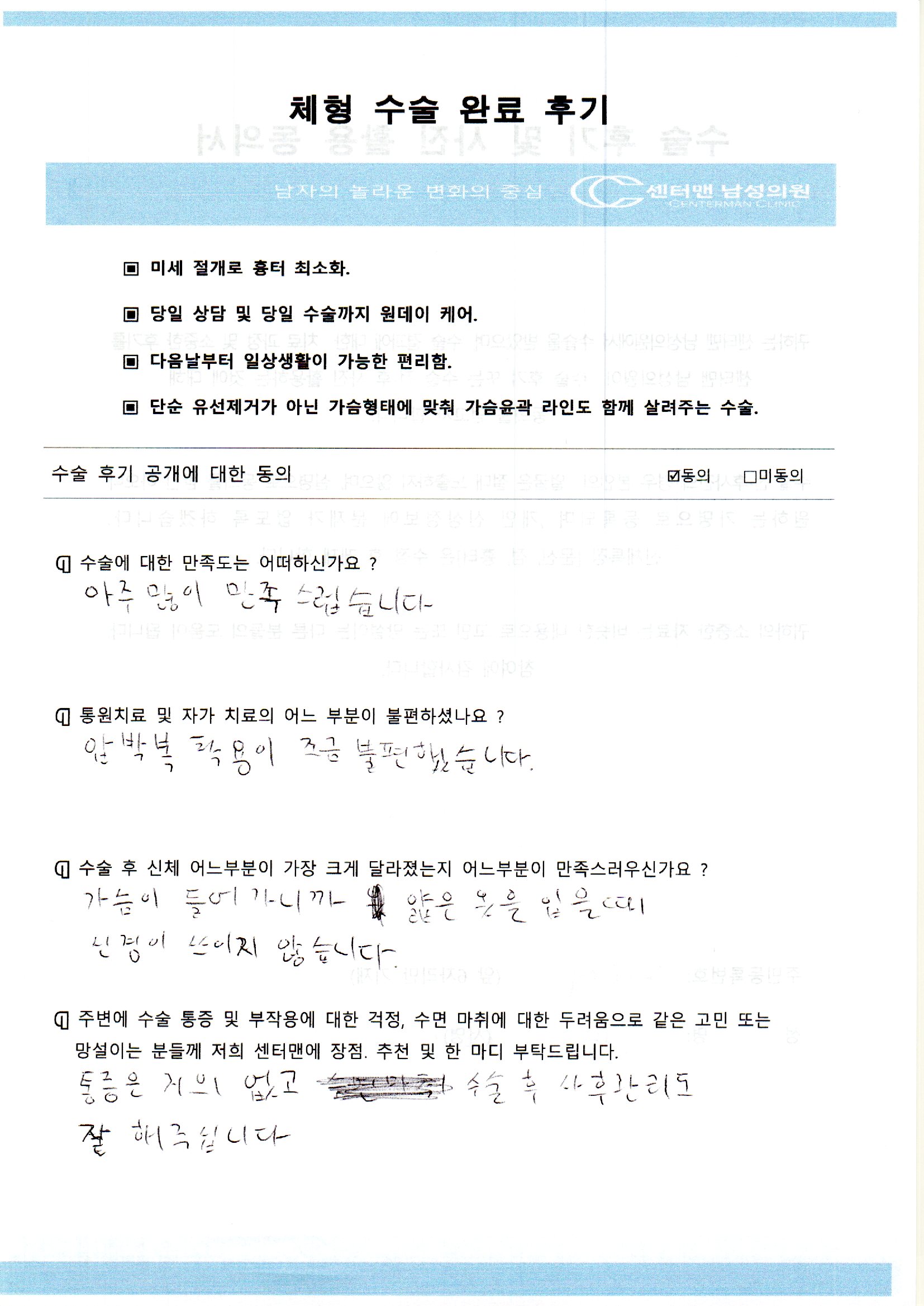 조**님 여성형유방증(여유증) 자필 수술후기 |