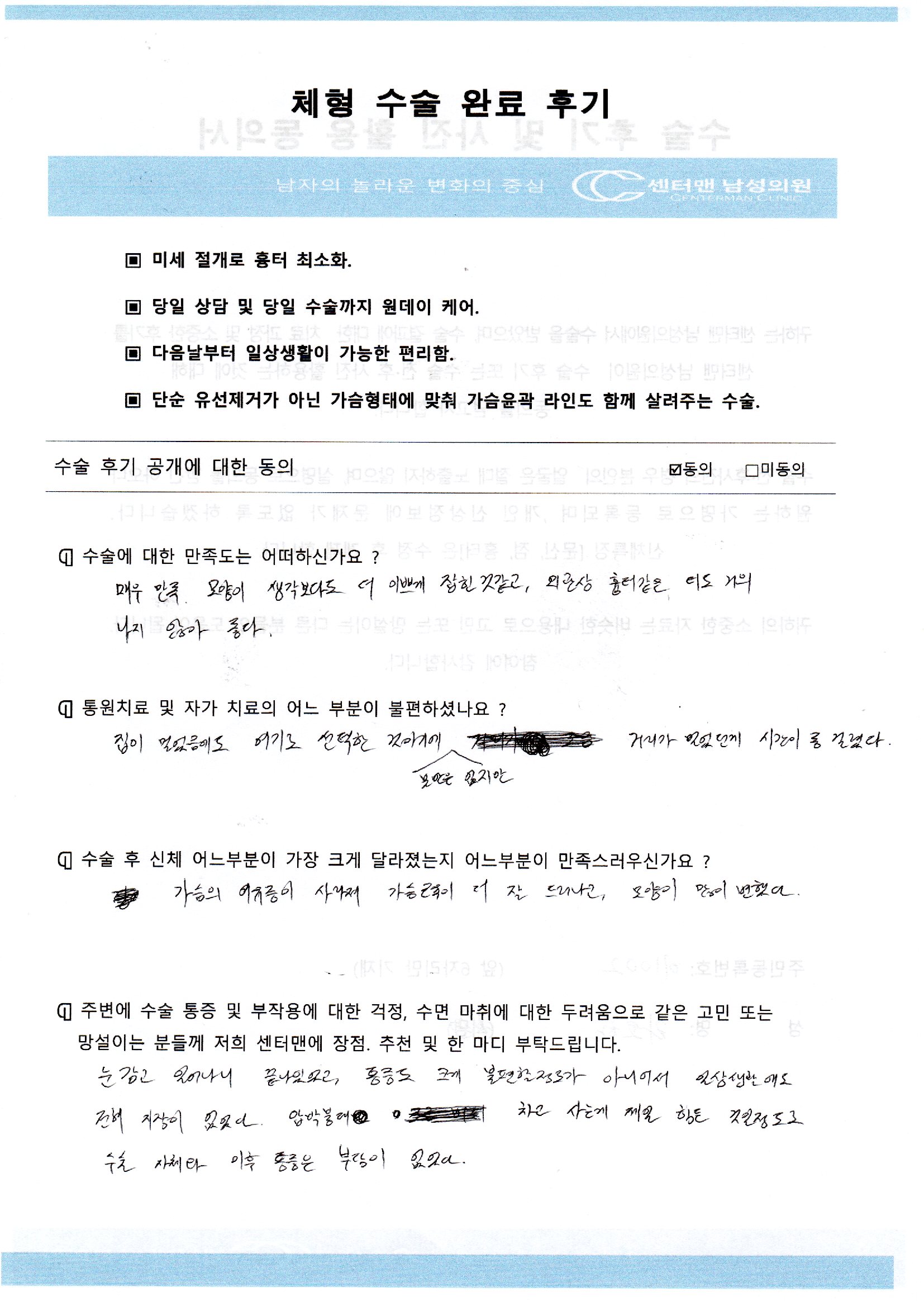 장**님 여성형 유방증 수술후 자필후기(여유증) |