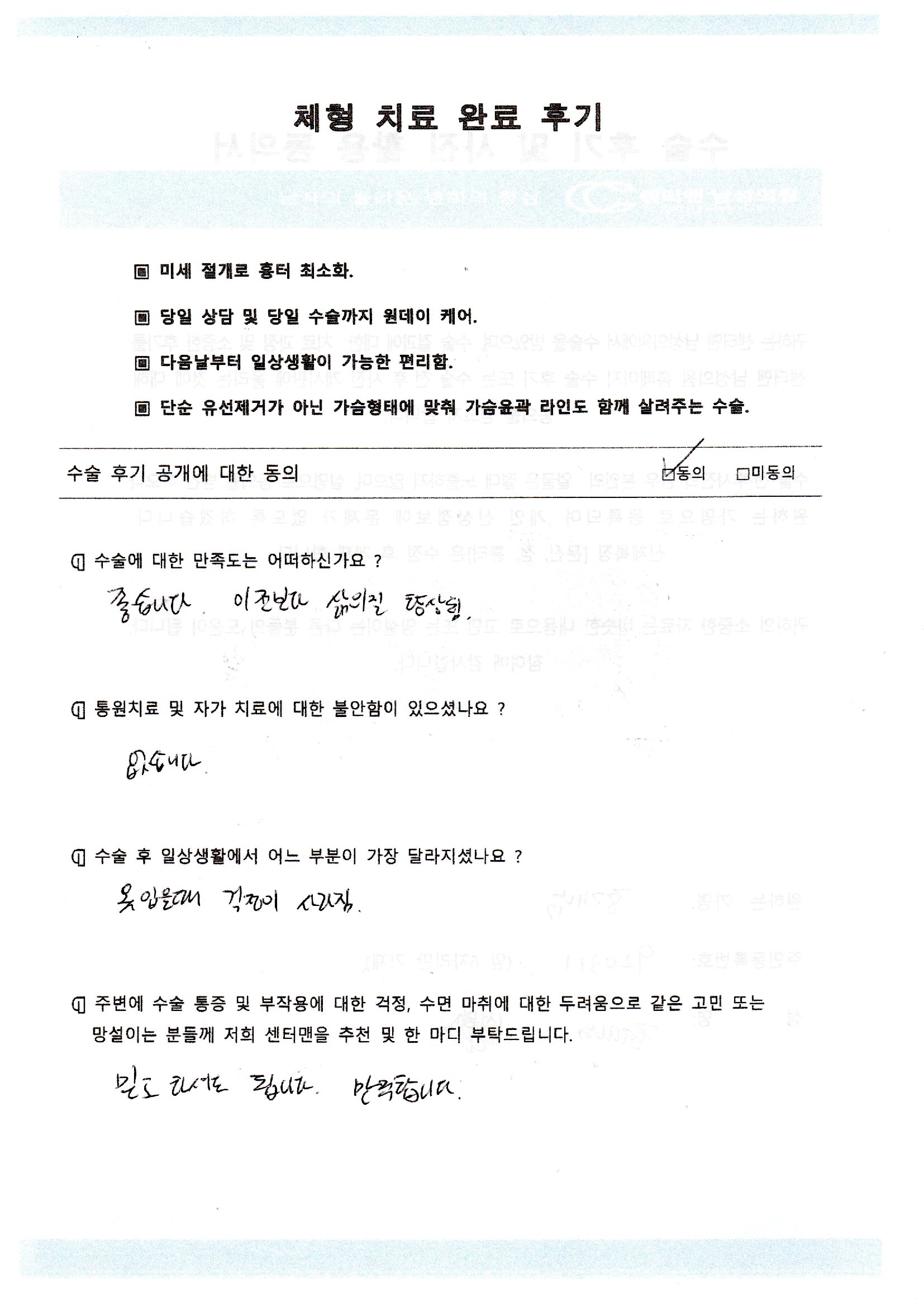 | 정**님 여성형 유방증 수술후 자필후기(여유증) | ||||||