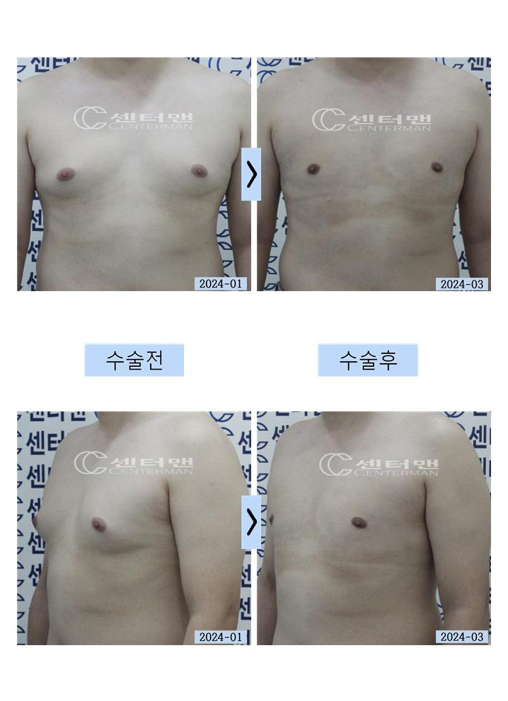 여성형 유방증 수술2개월후 전후 사진(여유증)