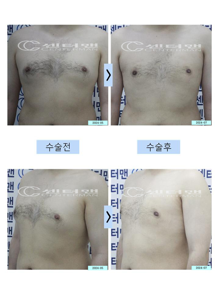 여성형 유방증 수술2개월후 전후사진(여유증)