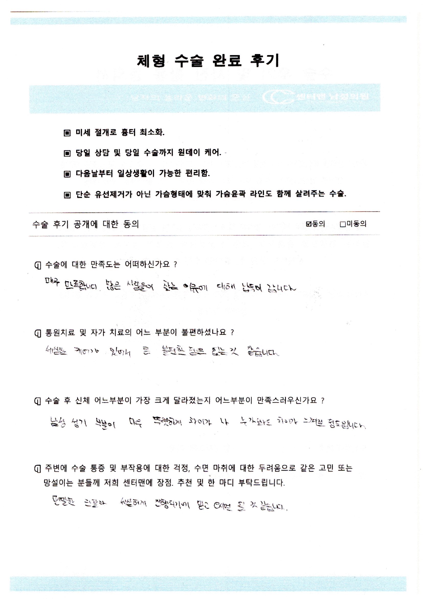 | 유**님 치골 지방흡입 및 포경갈퀴 수술후 자필후기 | ||||||