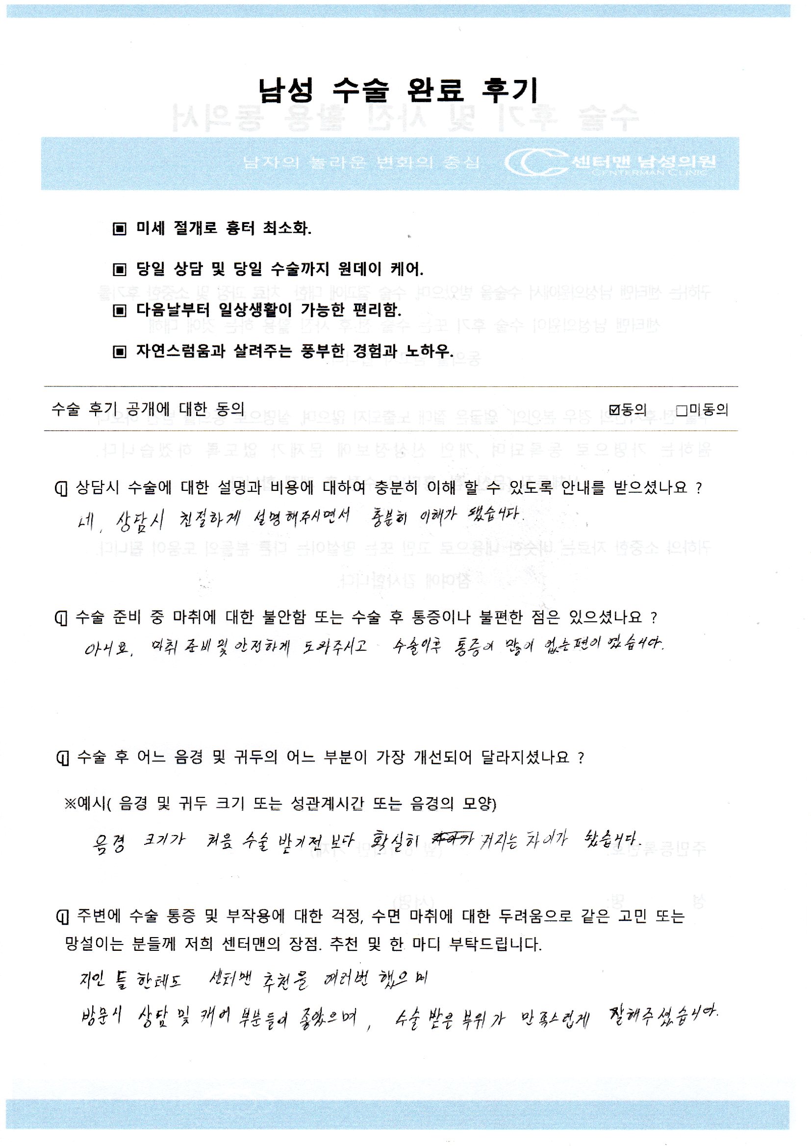 | 김**님 음경확대[자가지방]수술후 자필후기 | ||||||