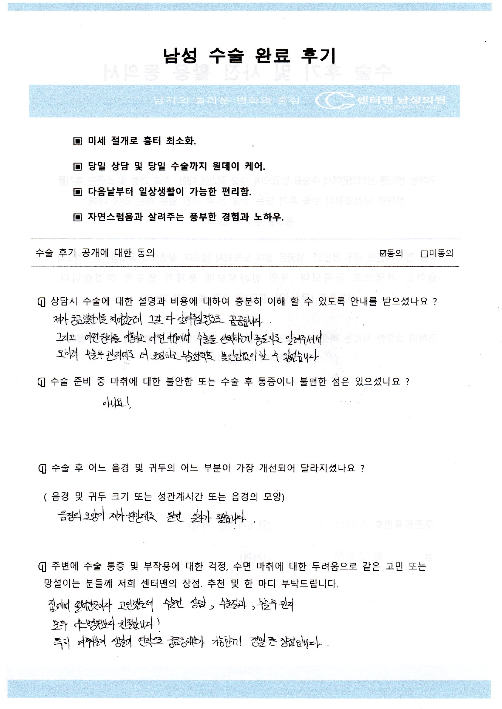 김**님 음경확대[자가지방]수술후 자필후기 |