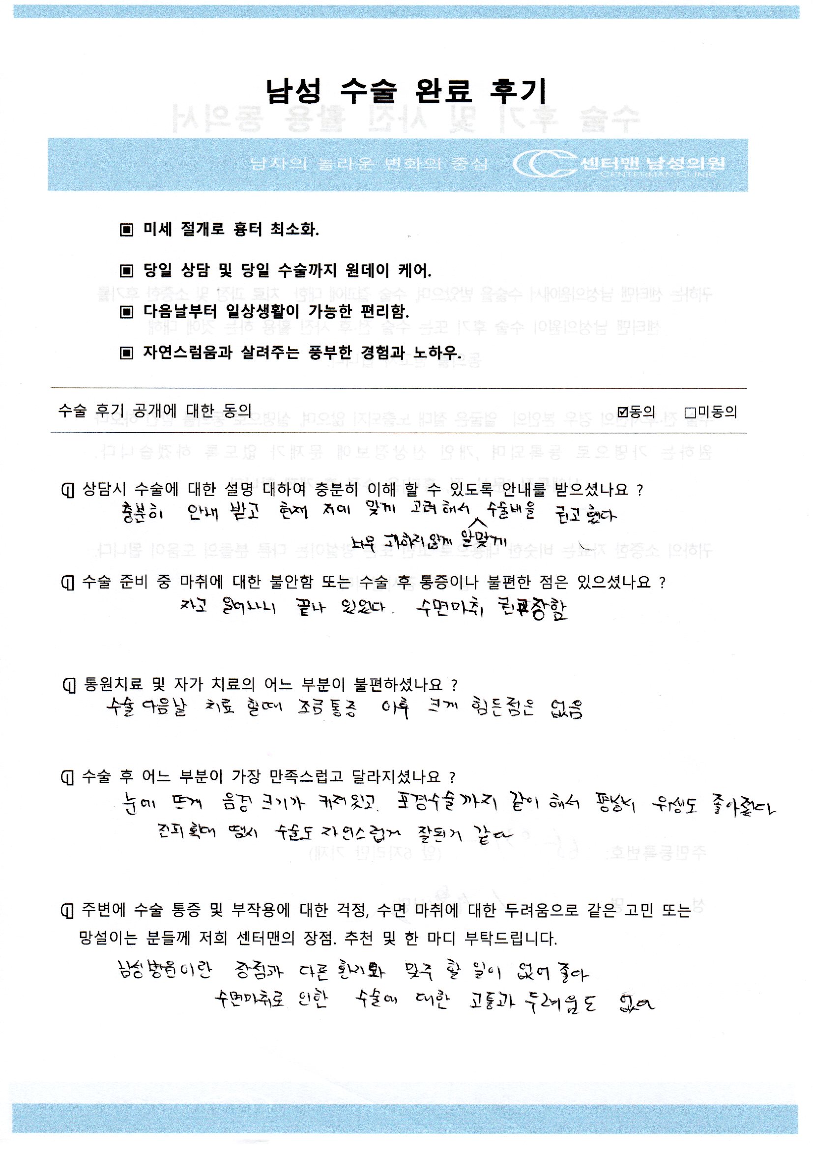 서**님 음경확대(대체진피),슬리브포경 수술후 자필후기
