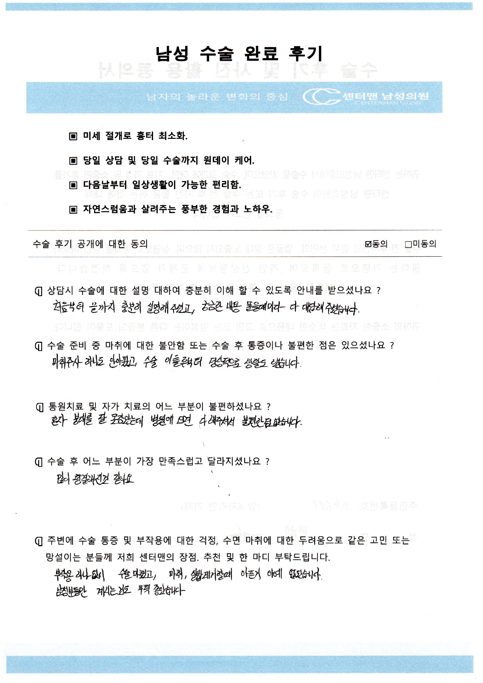 ** 후기는 본원에 내원한 환자가 자발적으로 직접 작성한 것으로 환자의 동의를 받았습니다.