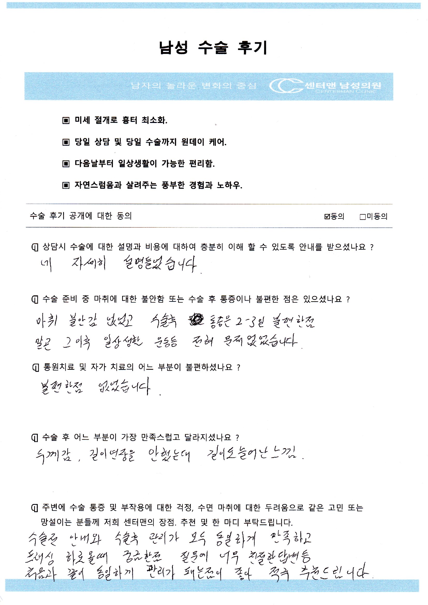 김**님 음경 교정술(만곡증) 수술1개월 후 자필후기 |
