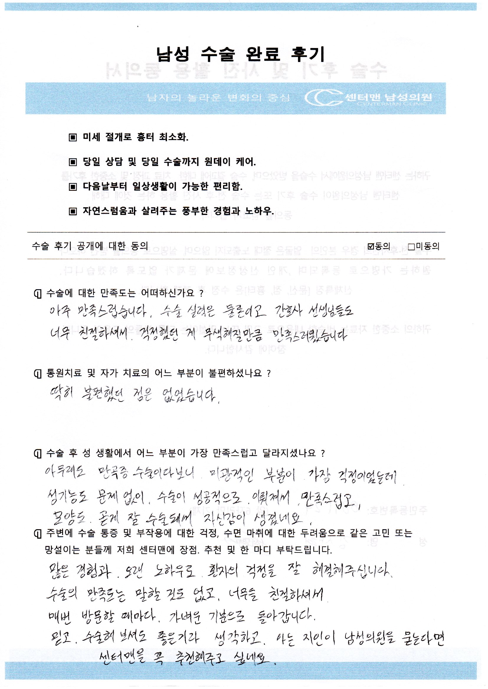 | 김**님 음경 교정술(만곡증) 수술1개월 후 자필후기 | ||||||